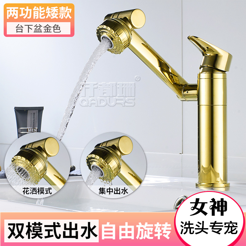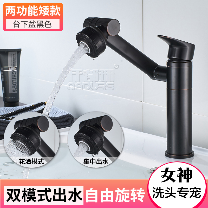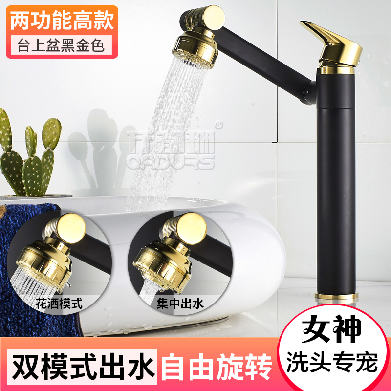 Powder room washbasin Black faucet Hot and cold washbasin Full copper washbasin Rotating table basin multi-function wash head