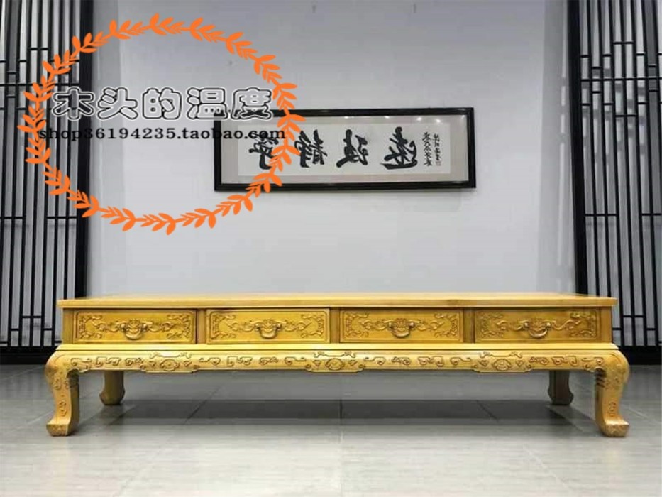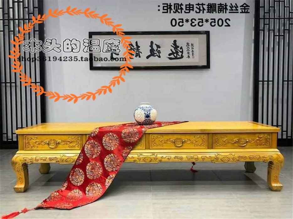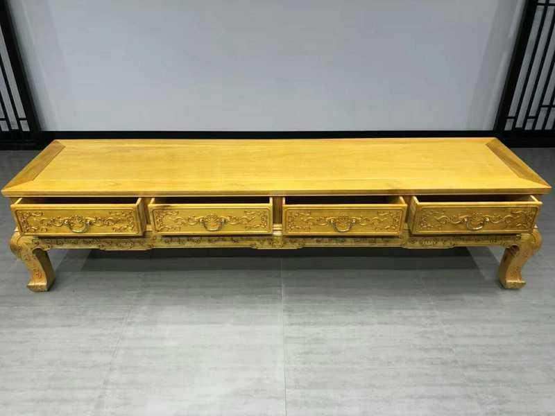 Boutique golden nanmu small leaf zhennanming style carved drawer TV video cabinet storage cabinet storage cabinet mahogany home