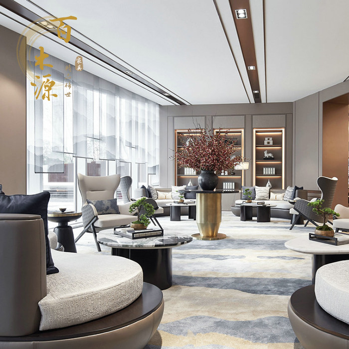 Modern light luxury negotiation table and chair combination sales office hotel new Chinese style reception leisure solid wood one table and four chairs spot