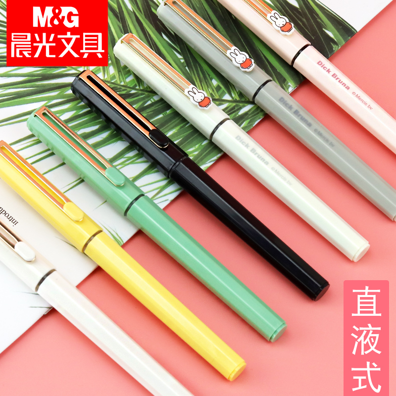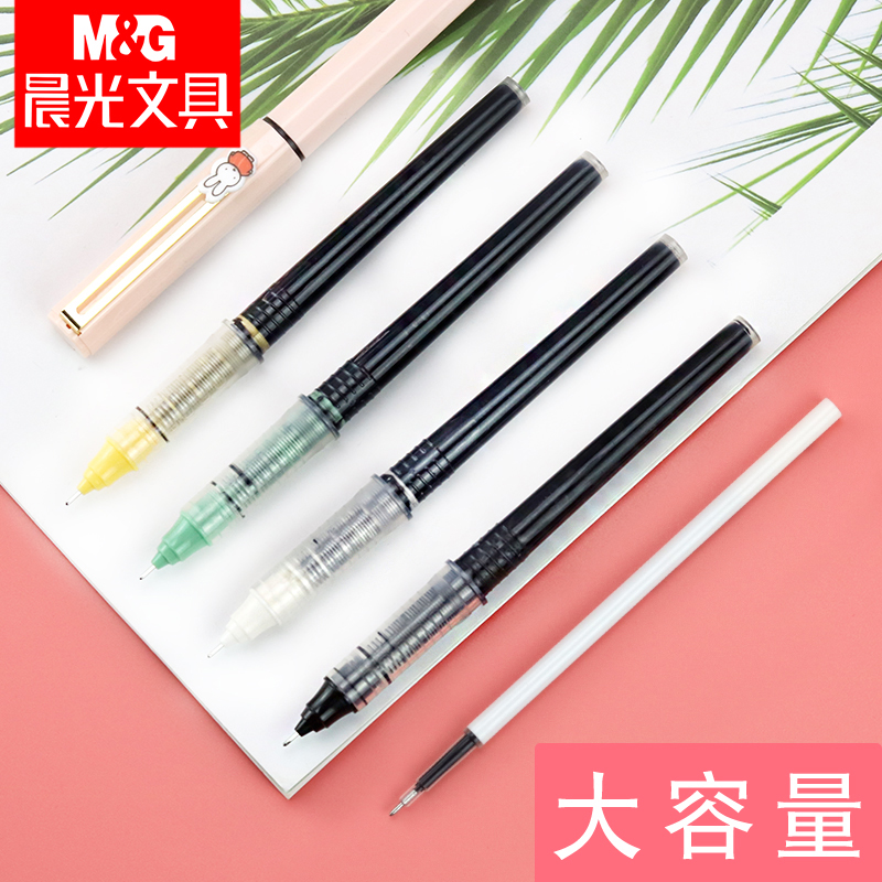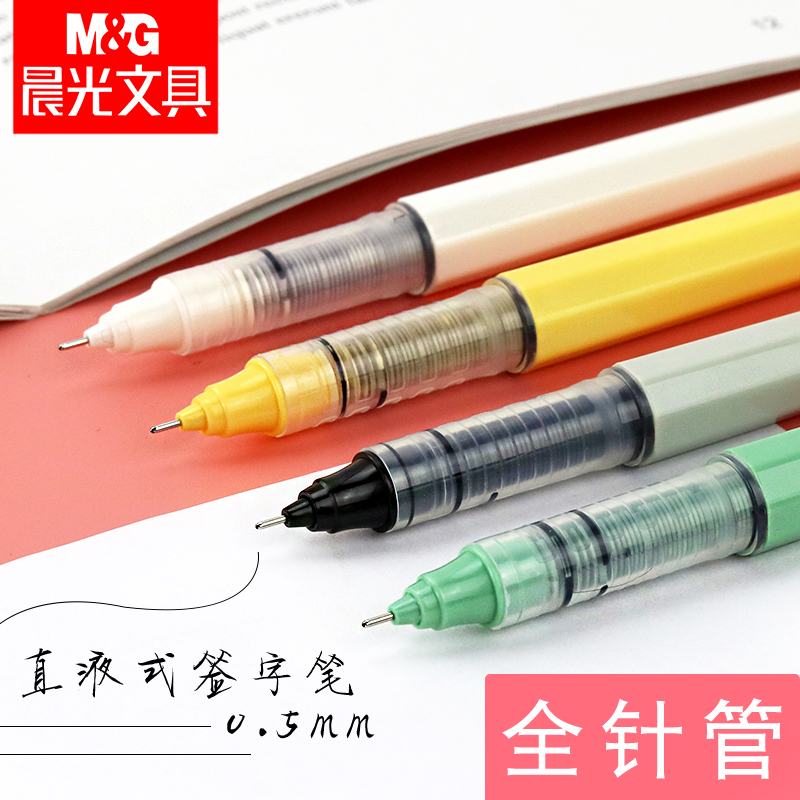 Morning light primary color series straight liquid style water-based pen black students with 0-5mm full needle tube refill carbon signature exam special speed dry straight liquid pen with exchangeable ink sack cute red pen