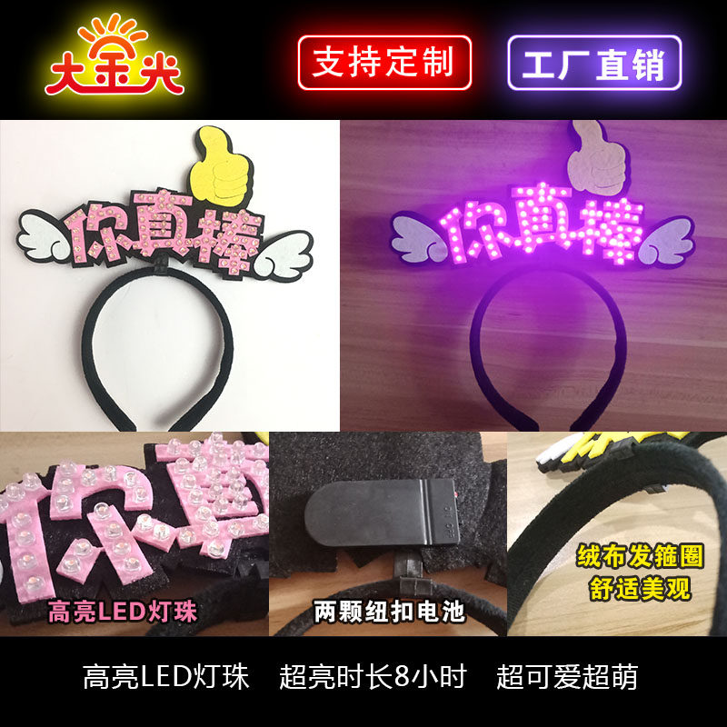 Personality luminous headdress DIY fabric hair band custom live cute net red should help activities wear text headband