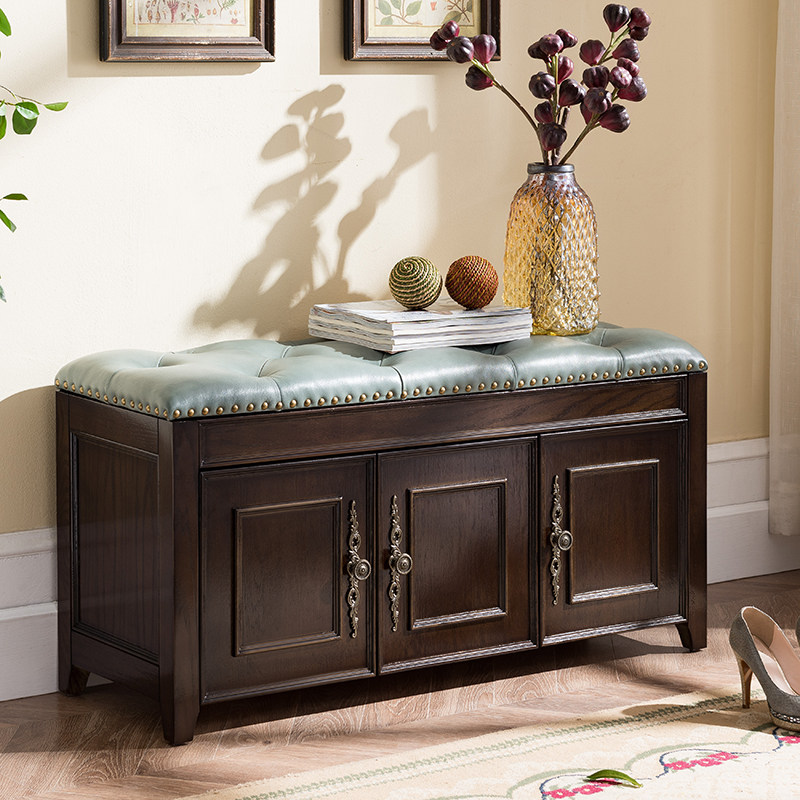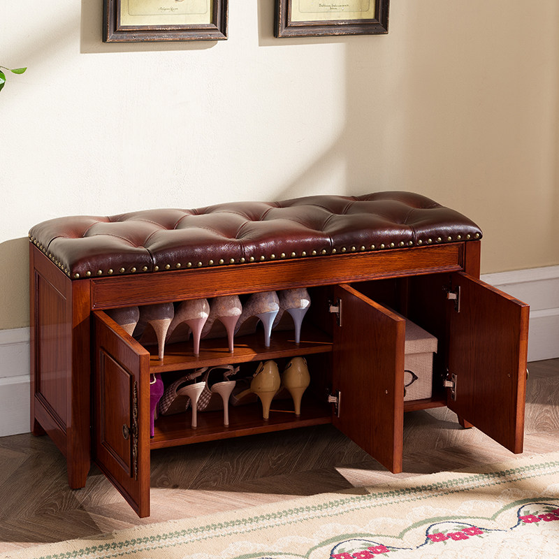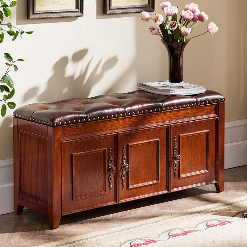 American-style solid wood shoe changing stool can sit at the door of the shoe cabinet, multi-functional shoe rack, storage stool, entrance door, household storage and wearing shoe stool