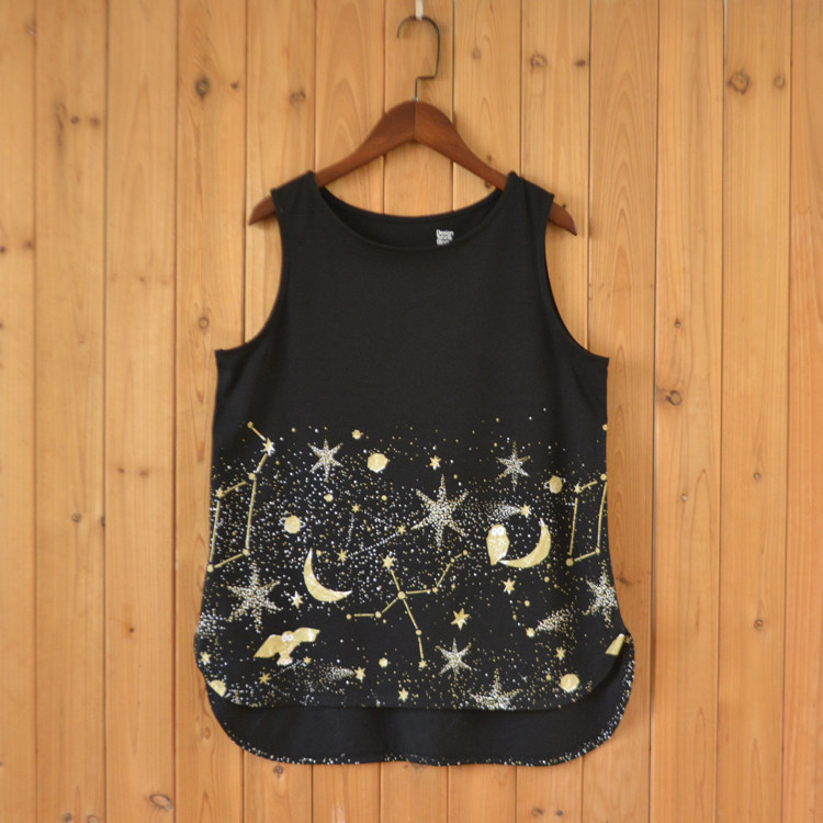 Fange Foreign Trade Day Single Ladies Star Moon Night Sky Print Vest