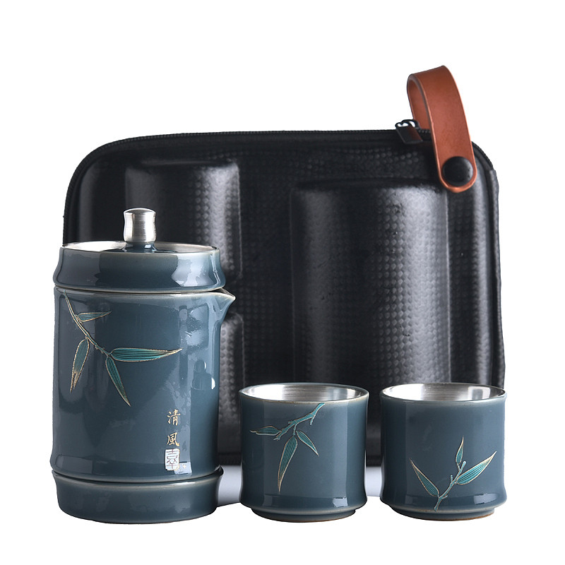 Office Travel Tea Set Army Green Travel Tea Set Dark Blue Travel Tea Set Wine Tea Red Travel Tea Set Toast 2 cups Skyblue One pot Two cups of red money One pot Two glasses of dark blue One pot of green grass green One pot of green