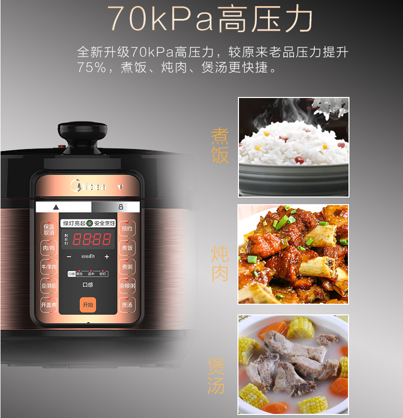 midea beauty pressure cooker household intelligent multi-function double-deck 6-liter large-capacity 4-5 people cooking electronic pressure cooker