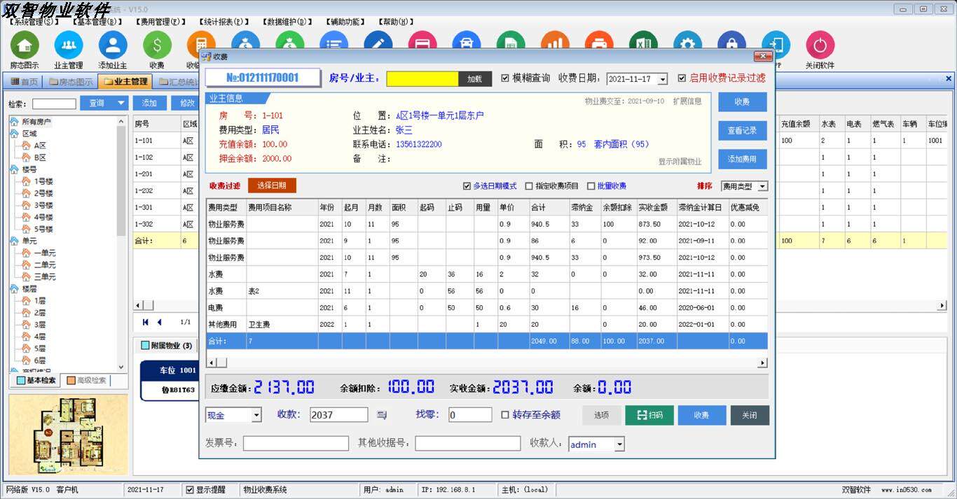 Dual-wise Property Charge Management System Single-machine LAN Internet Edition web-end mobile phone app end owners