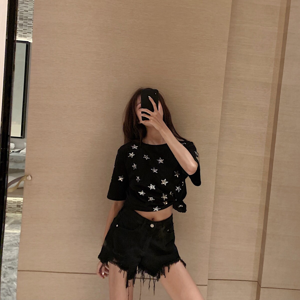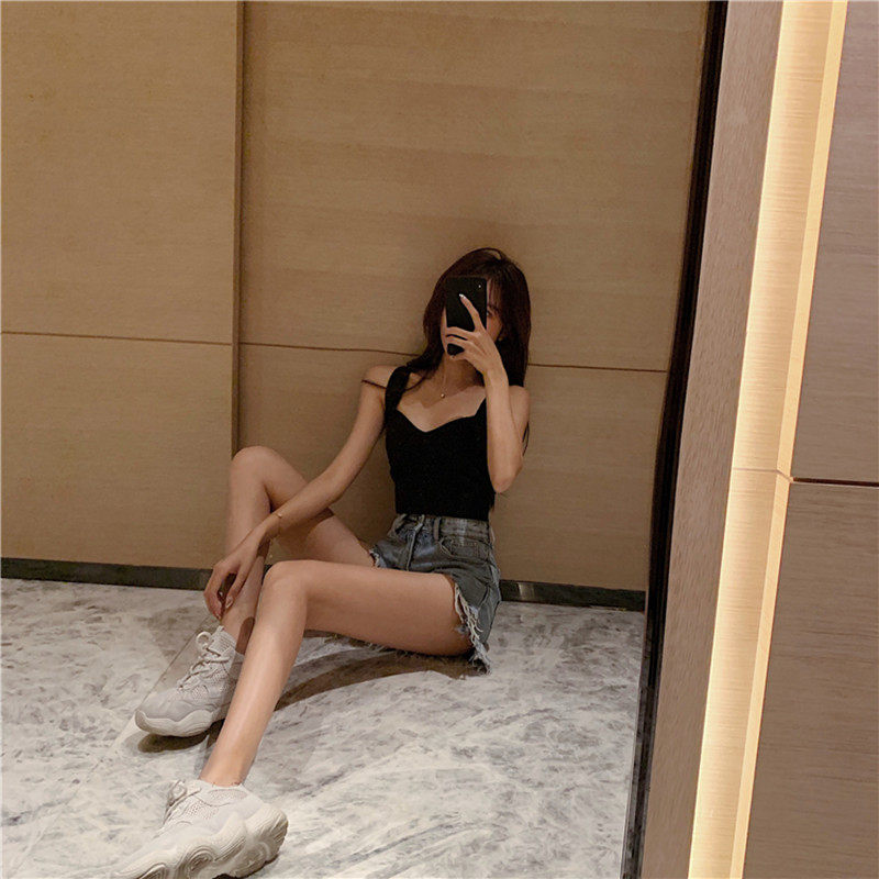 High-waist ripped denim shorts are feminine and thin lisa same style summer wide-leg all-match ripped Hyuna hot pants trendy