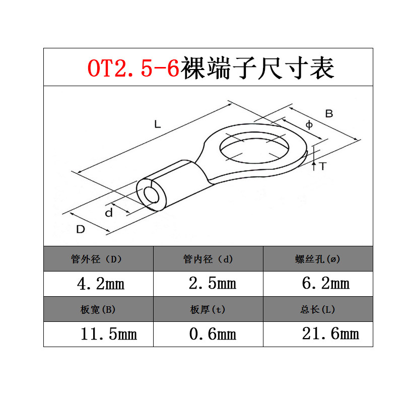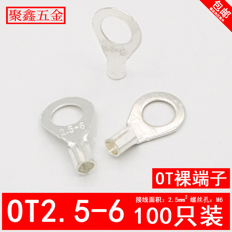OT2 5-6 Cold pressed wiring terminal O type round bare end head copper wire nose silver plated 2 5 square wire ear 100 only