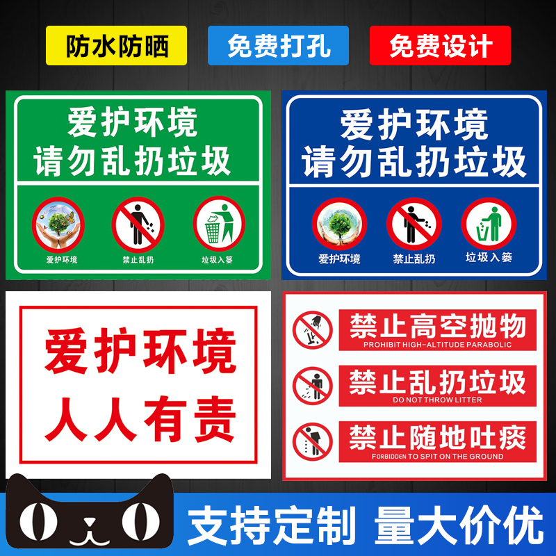 It is everyone's duty to protect the environment prohibit littering violators fine construction domestic waste cigarette butts and scraps of paper signs prohibit throwing objects from high above spitting warning signs custom