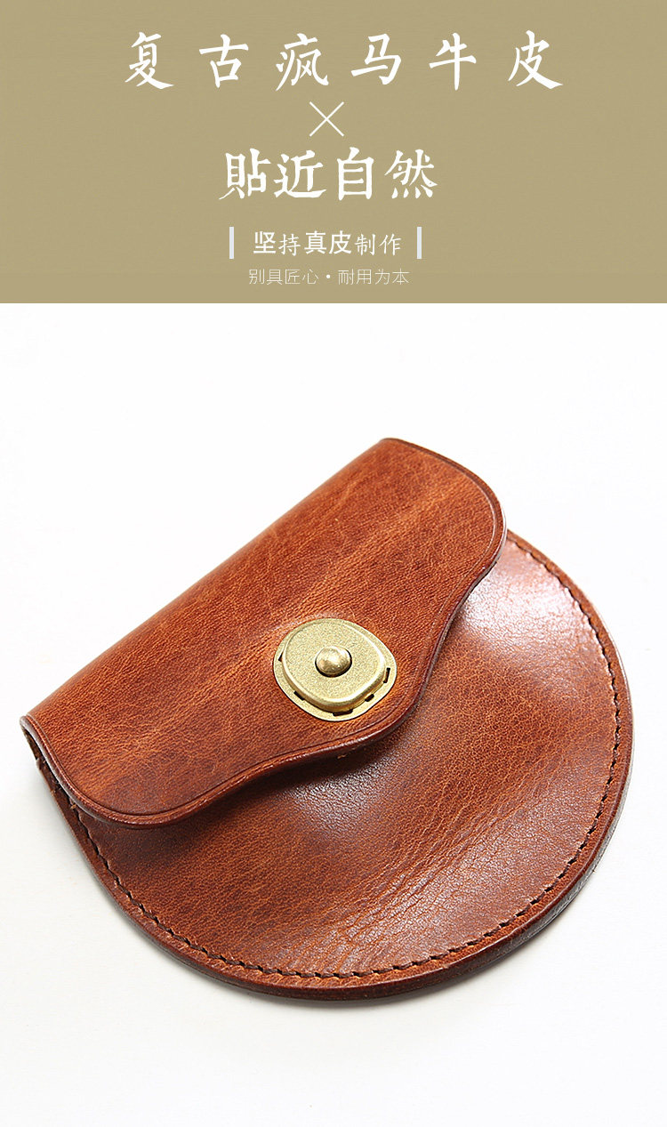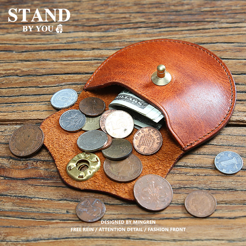 Holvin Handmade Mini Coin Case Student Wallet Men's Leather Buckle Card Holder Women's Short Leather Coin Purse