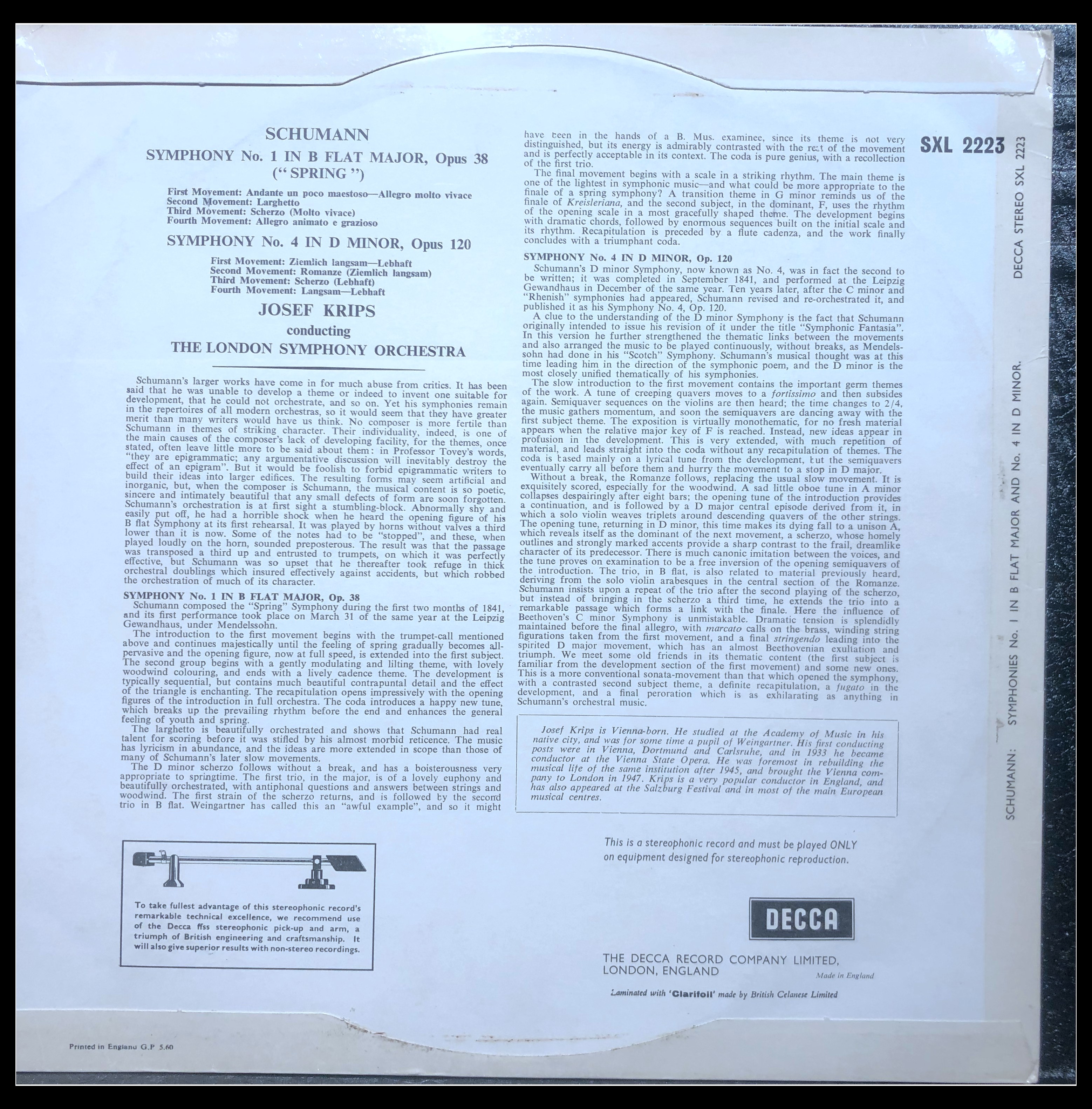 Krips Krips London Symphony Schumann Symphony - Spring, etc. Front page engraving Decca 1LP# vinyl