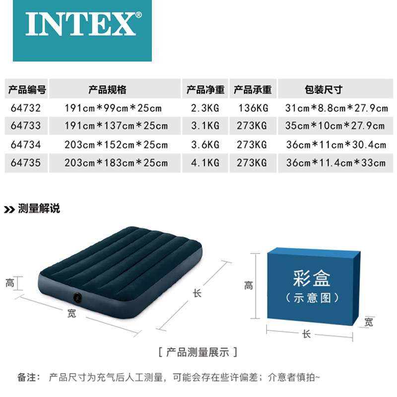 INTEX air mattress Inflatable mattress Double household thickened single folding bed Outdoor lunch break simple portable bed