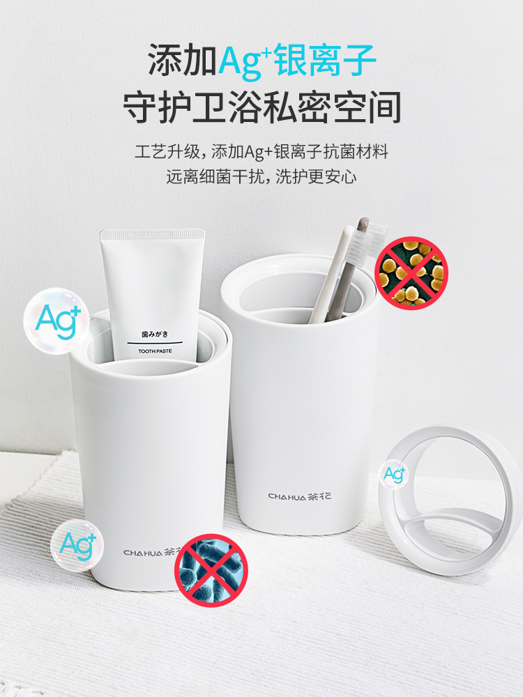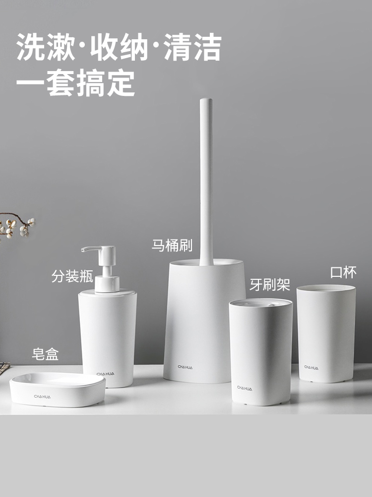 Soap box, mouthwash cup, toothbrush holder, mouthwash cup, toothbrush holder, mouthwash cup (2 packs), toothbrush holder, separate bottle, toilet brush, simple pure white 5-piece set