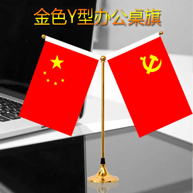 Gold Y-shaped party flag national flag desktop decoration office table flag conference room titanium alloy flag frame can be customized nano flag