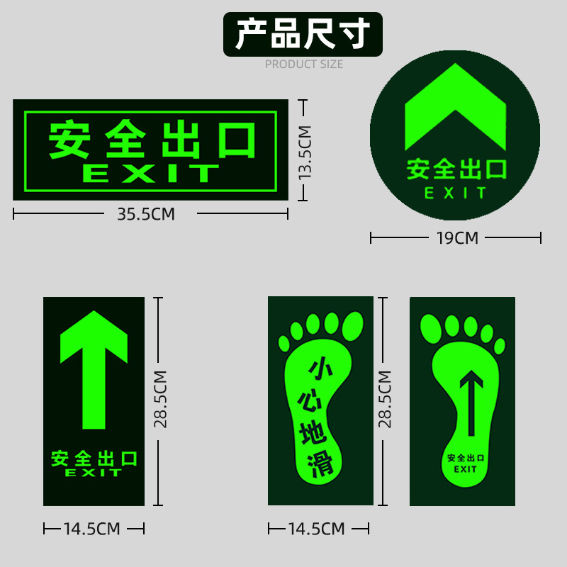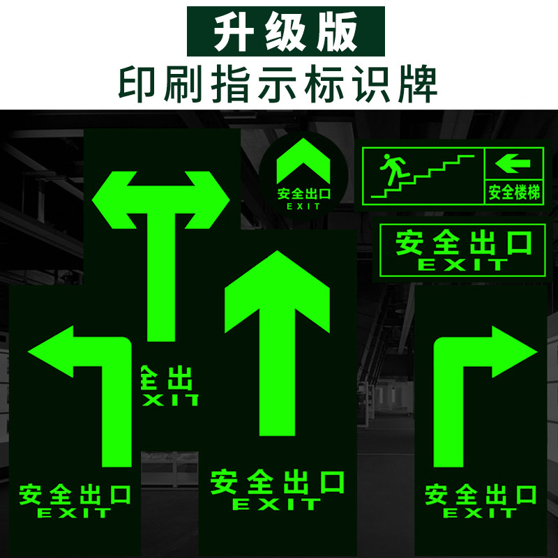 Luminous emergency exit straight floor stickers White safety exit wall stickers Safety exit left and right wall stickers Safety exit left wall stickers Safety exit right wall stickers Safety stairs Left wall stickers Safety stairs Right wall stickers
