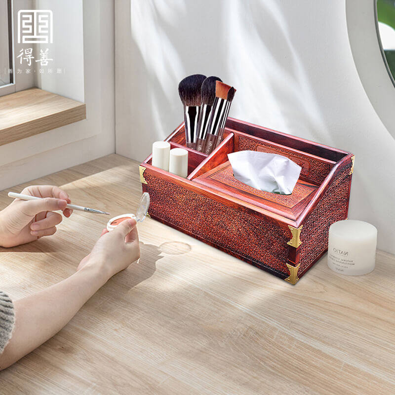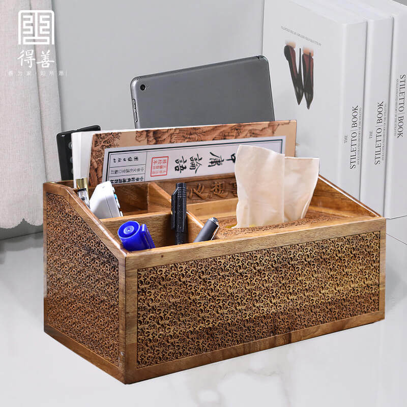 Mahogany big red twig dragon pattern flip paper towel storage box multi-function desktop remote control creative draw carton living room