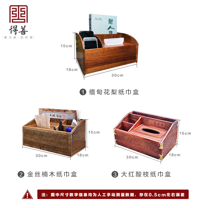 Burmese pear tissue box Big red rosewood tissue box Gold silk nan wood tissue box