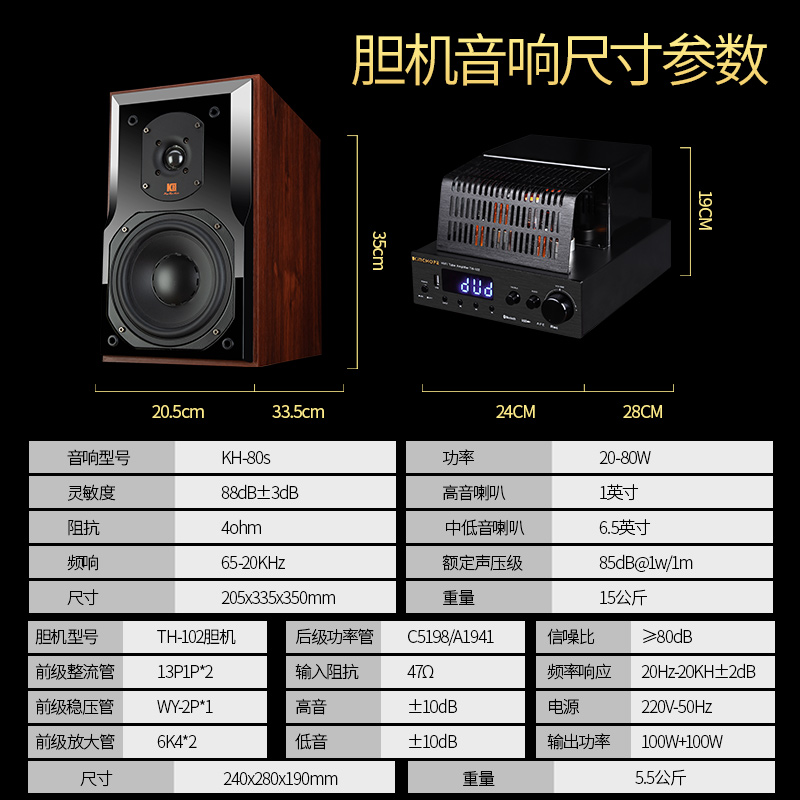 KingHope KH-80S optical fiber fever vacuum tube bile machine audio 6 5 inch hifi bookshelf speaker set
