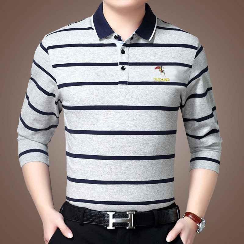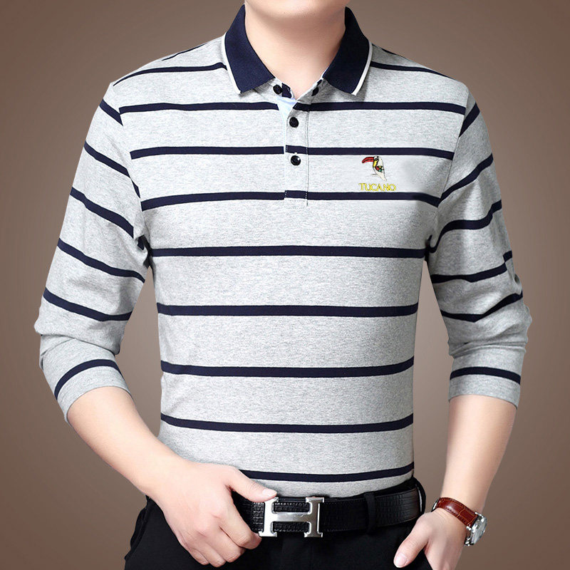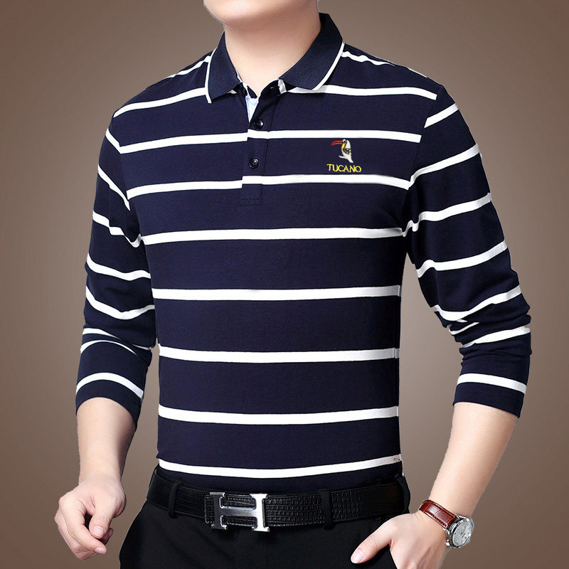 Woodpecker pure cotton long sleeve T-shirt male spring clothes turn over daddy dress middle age streaks with collar polo shirt trend