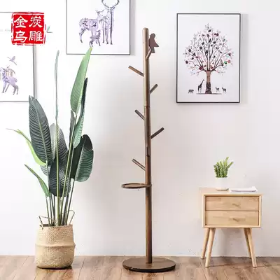 Cartoon bird coat rack (walnut color) cartoon bird coat rack ((raw wood color) hollow coat rack ((walnut color) White hardware solid wood column model without charcoal bag (walnut color)