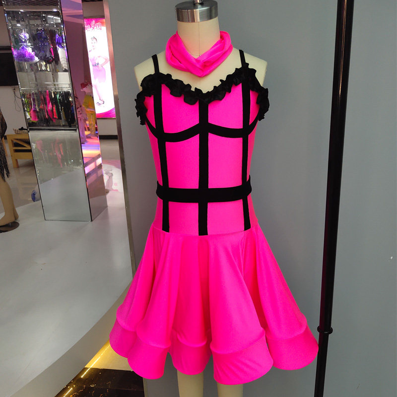 Latin dance girl children's professional standard competition suit Practice suit Children's dance sling performance performance suit large skirt