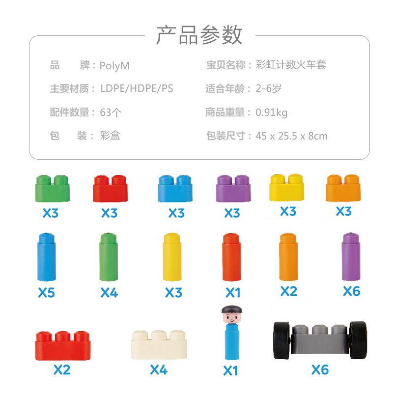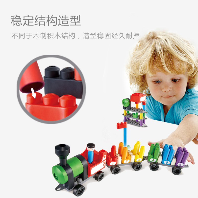 Hape Rainbow Counting Train Set Soft Building Blocks PolyM2-6-year-old Boys and Girls Pipe Creative Spelling Educational Toys