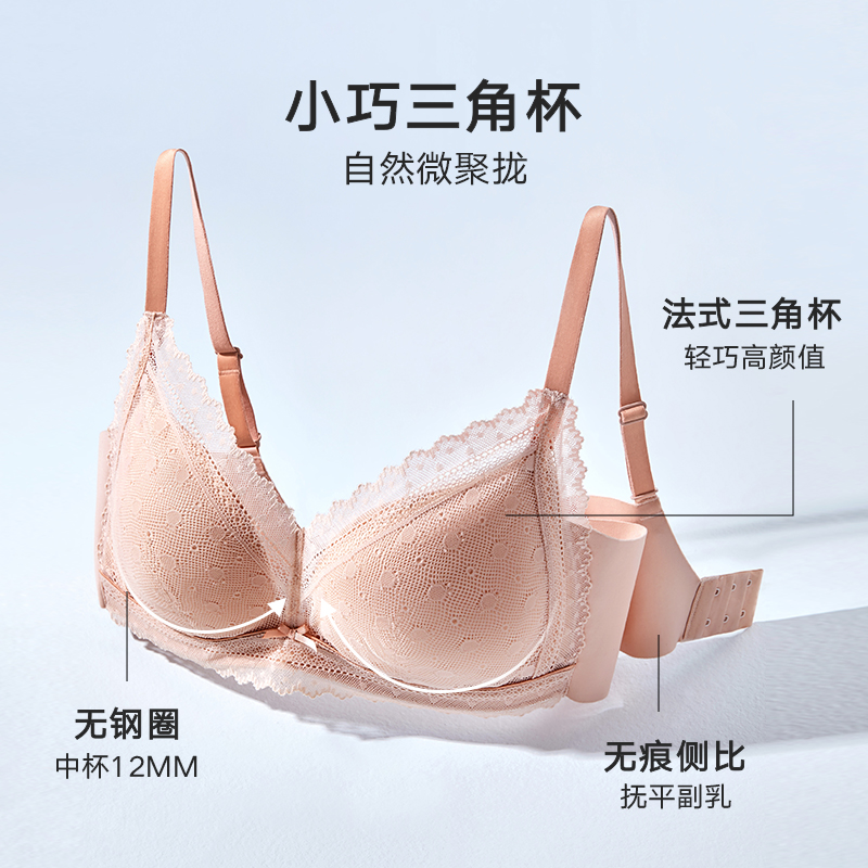 Maniform Comfortable Push Up No Steel Ring Bra Romantic Lace Underwear Ladies Sexy Thin Soft Support Bra
