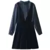 Europe station 2021 spring new small fragrance dress suit women's mesh long-sleeved thin temperament two-piece set