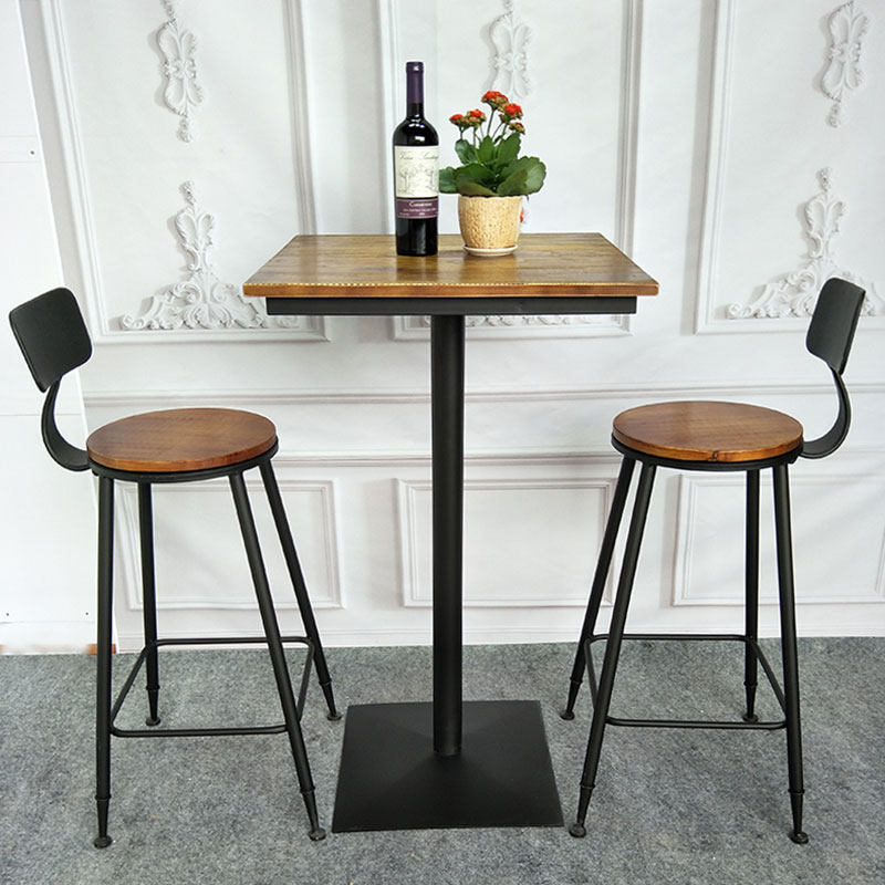 Iron solid wood bar high chair bar table and chair round stool home American dessert shop balcony leisure round table square table