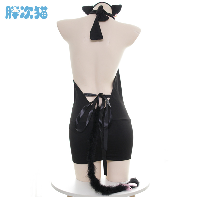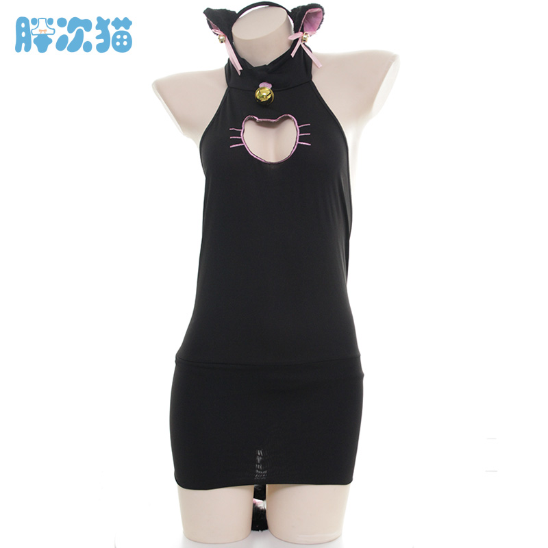 One-piece cat pajamas set Japanese girl nightdress with headband embroidery cat girl