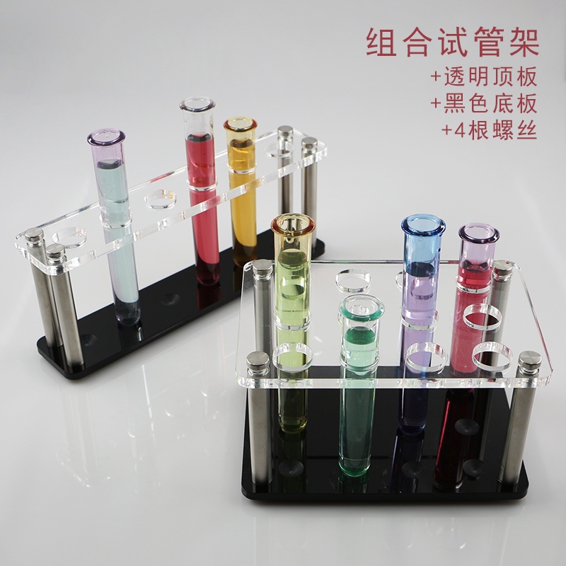 Combined black floor test tube frame (6 holes) combined black floor test tube frame (12 holes) (2*12CM) transparent color PC test tube (6 packs) (2*12CM) sky blue PC test tube