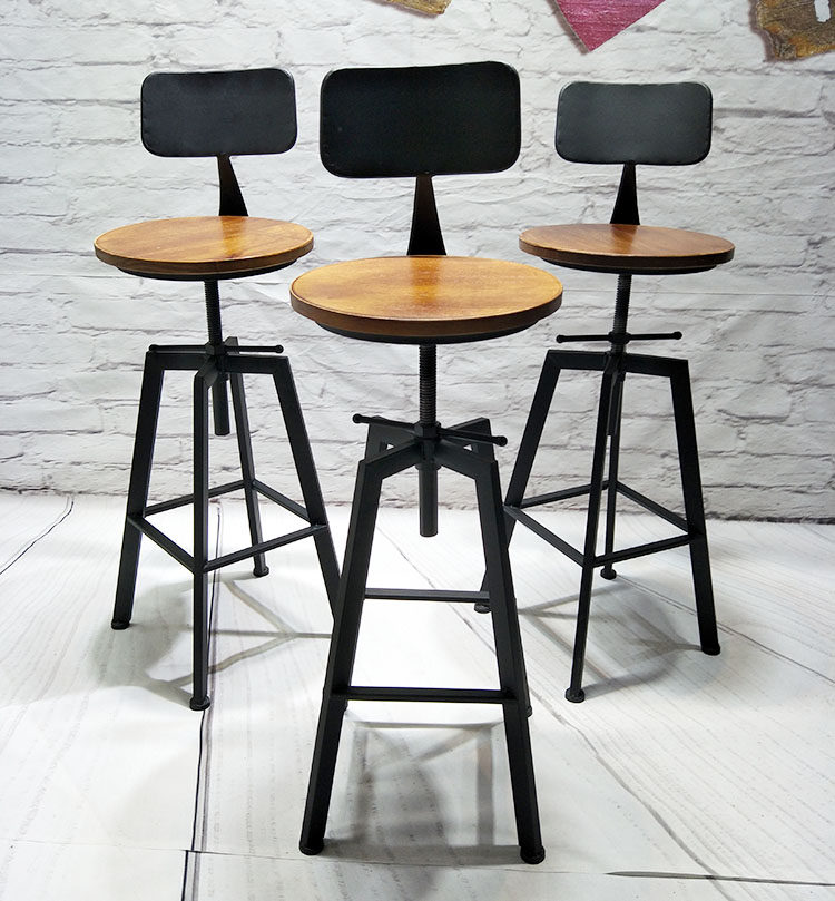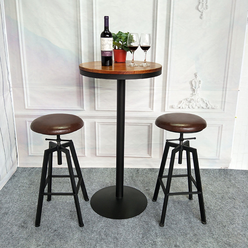 Wrought iron high tables and chairs bar chair lift chair home rotating leather stool European loft milk tea shop round table round stool