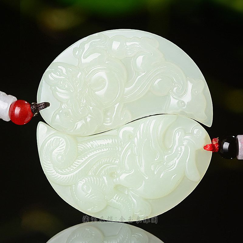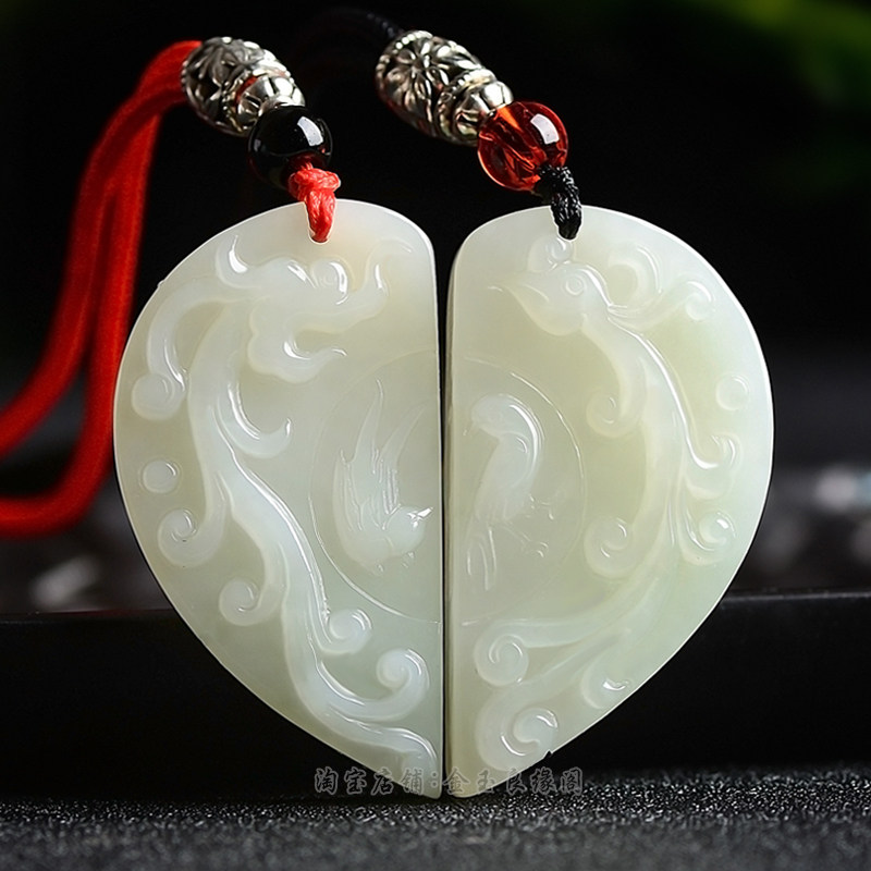 Natural and Tian Yu pendant couple a pair of Longfeng Yubei men's female jade crash jade necklace jade hanging