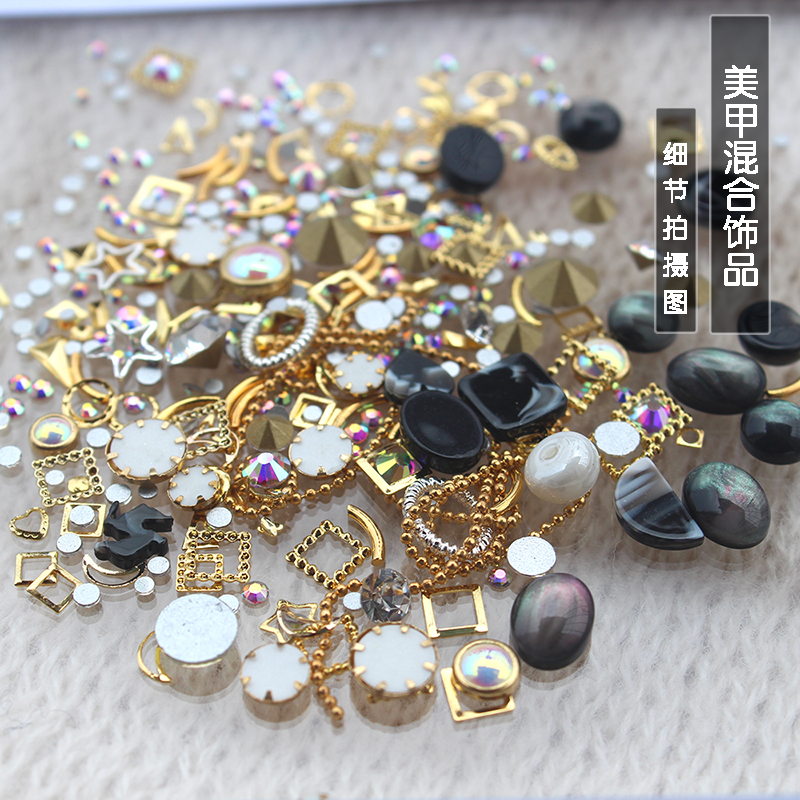 2021 new nail pearl decoration rivets metal chain metal flash diamond pearl rain stone mixed diamond jewelry