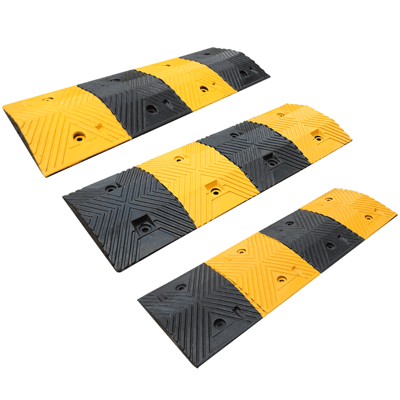 Rubber speed bump series 3 cm thick (recommended by the community) 4 cm thick (recommended on country roads) 5 cm thick (recommended by national roads) 7 cm thick (recommended by provincial roads) 5 cm thick