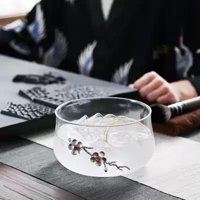 Glass small round tea wash (1100ml) glass small round bamboo cover tea wash (1100ml) glass small round paste plum blossom tea wash (1100ml) glass small round paste plum blossom bamboo cover tea