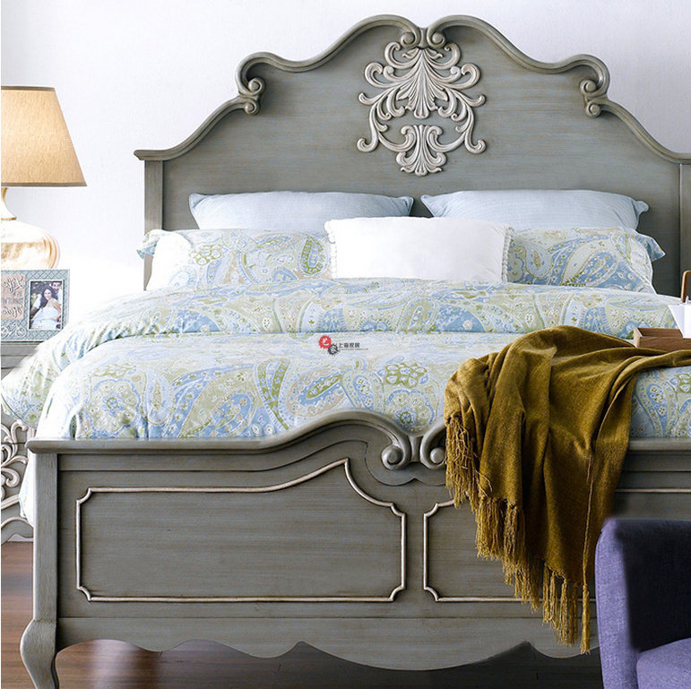 American retro old 1 5 princess bed European antique carved double bed Villa neoclassical 1 8 solid wood wedding bed