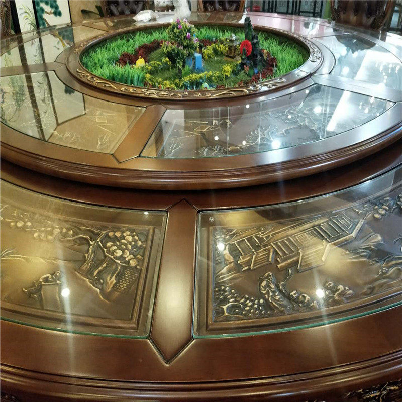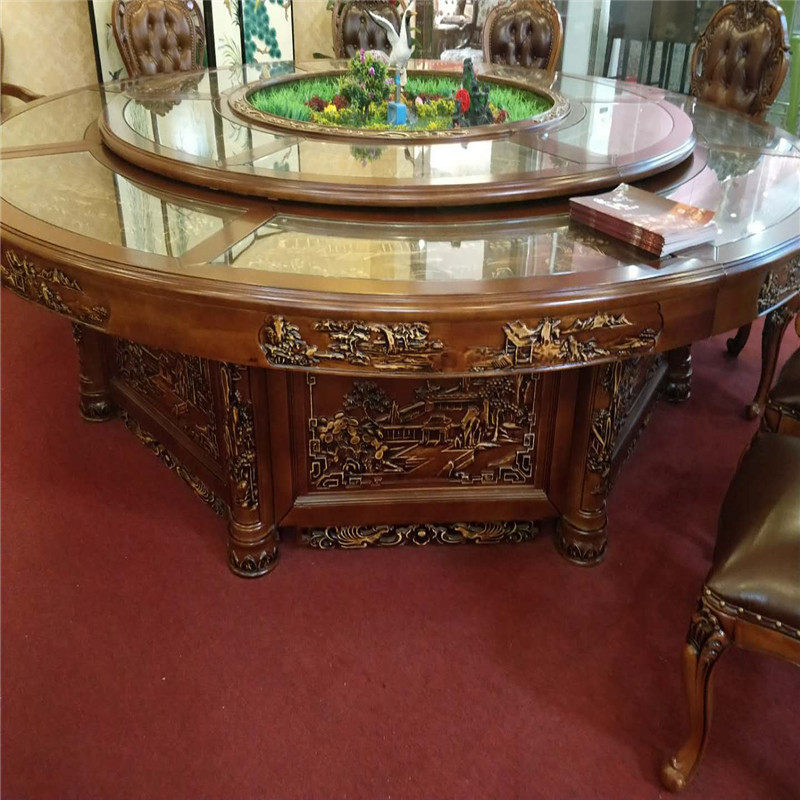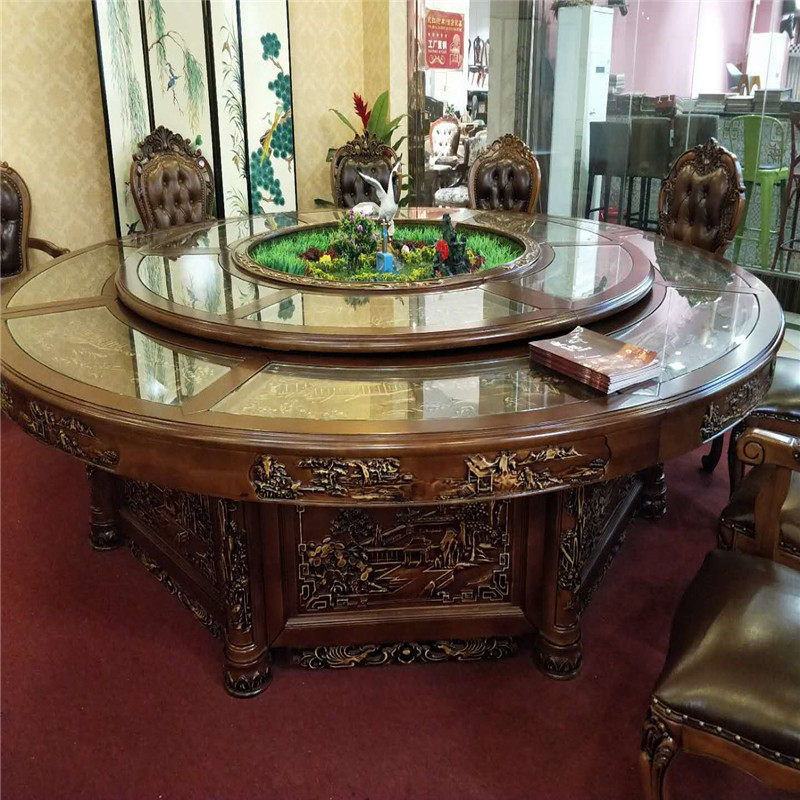 Customized high-end elephant wood carving hotel electric dining table large round table restaurant round table hotel banquet box