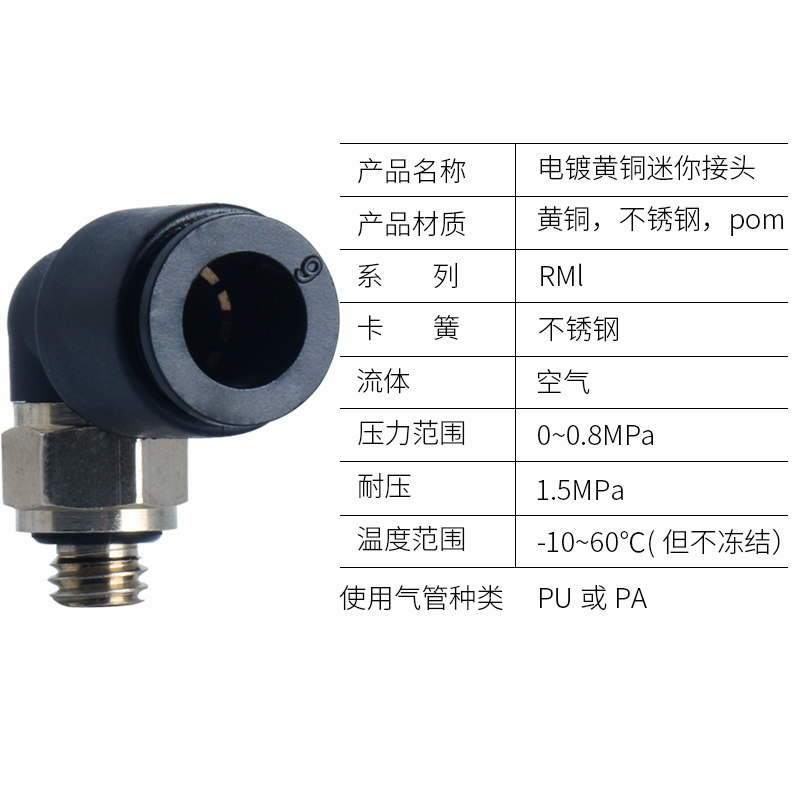 High pressure pneumatic trachea black mini miniature small bending quick joint RML KJL 4 6-M3 M5 01