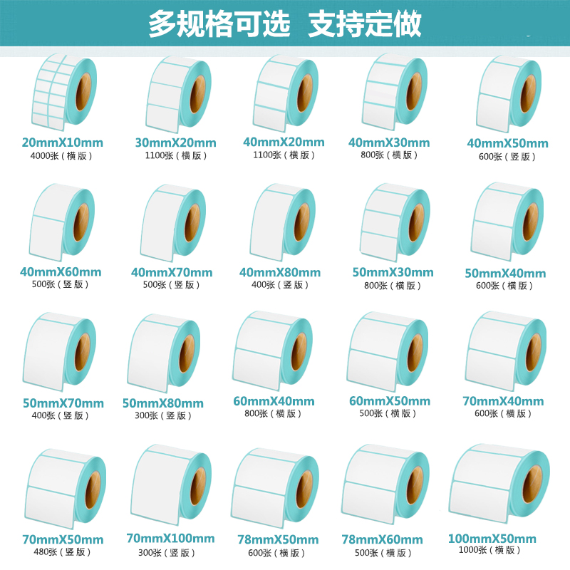 Endurance triple anti-thermal sensitive adhesive label paper whole box 20 50 40x30 50 60 70 80100 80100-proof hot-sensitive label Paper milk tea shop Supermarket Electronic Scale Barcode Photocopy Paper Label