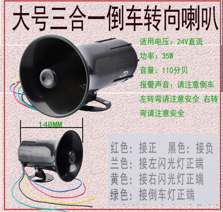 Large three-in-one reversing steering horn 24 volts medium three-in-one reversing steering horn 24 volts medium three-in-one reversing steering horn 12 volts medium voice reversing horn 12 volts (single reversing) medium