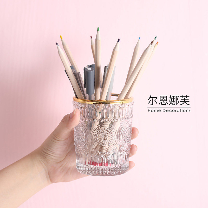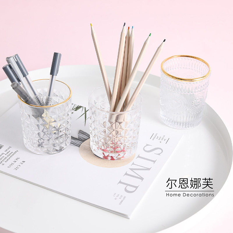 Glass plain white tube rainbow cup-transparent glass gold-rimmed tube Baroque painted gold tube light summer without foam] Candy-green cloud tube-pink sea salt white polka dot-navy blue sea salt bottle-