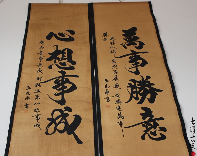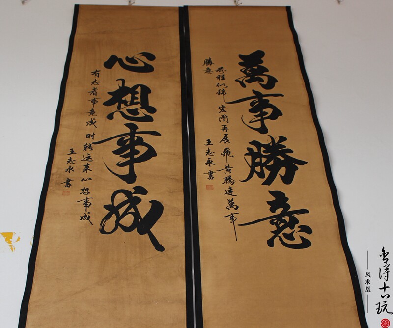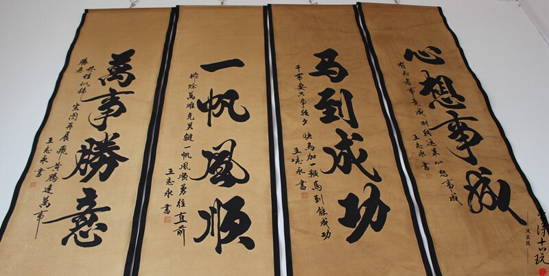 Antique old calligraphy and painting Chinese painting Mural Horse to success word four screen decorative painting Living room hanging painting has been mounted