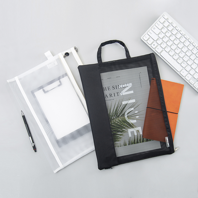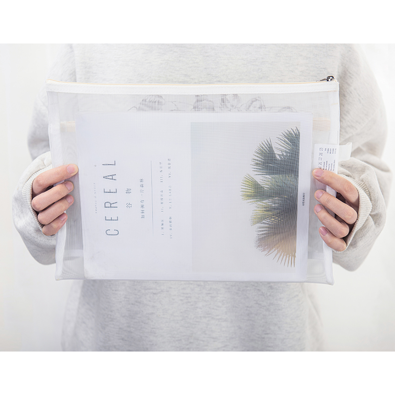Blue fruit double pull chain mesh yarn transparent file bag A4 minimalist objectivist student paper collection bag bill bag file kit big capacity high exam thickened grid exam special bag