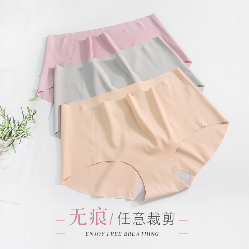 No Marks Underwear Lady Ultra Slim Summer Ice Silk Mid Waist Sexy Big Code One Piece Breathable Pure Cotton Crotch Triangle Pants-Taobao