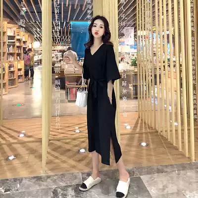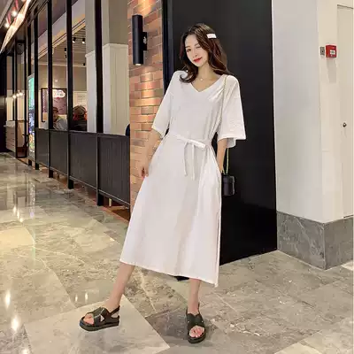 Pregnant women's summer clothes new Korean version of the long version of the dress large size loose thin cotton pregnant women split long skirt