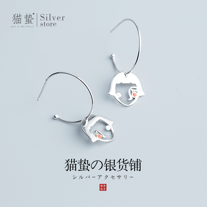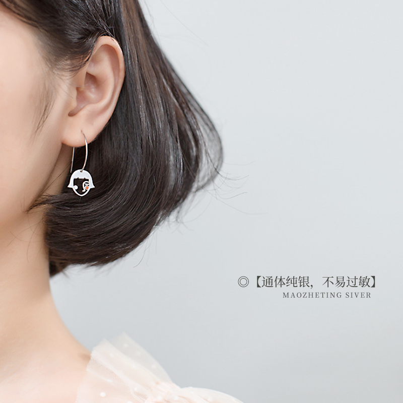Cat sting short hair girl earrings female S925 sterling silver niche girl student personality exaggerated temperament fashion ear jewelry