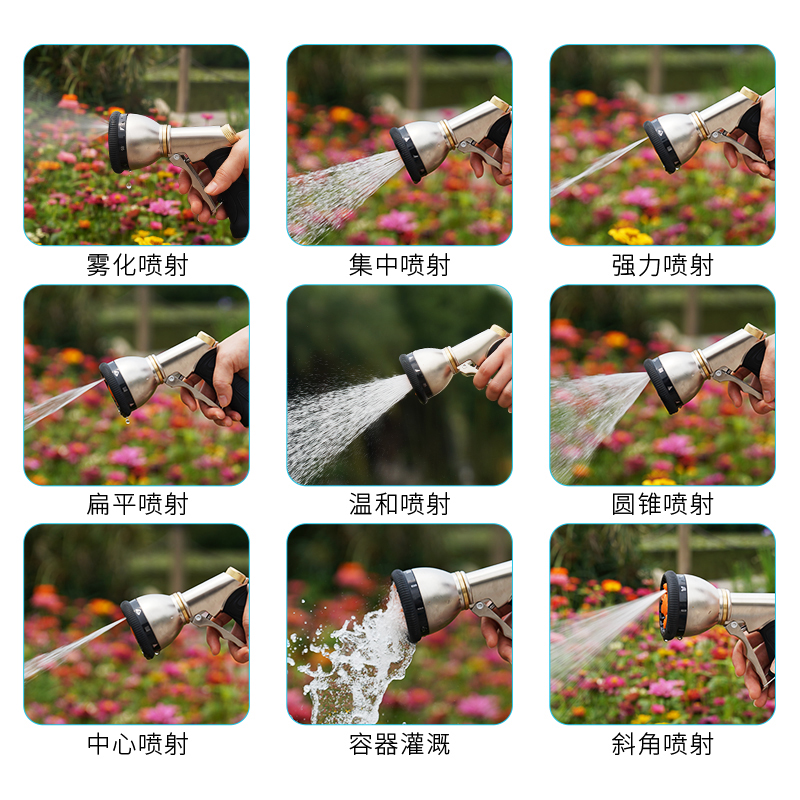 All-metal 9-mode watering water gun 20m storage cart set All-metal 9-mode watering water gun 25m storage cart set All-metal 9-mode watering water gun 30m storage cart