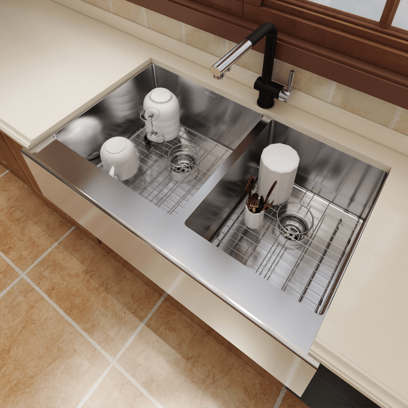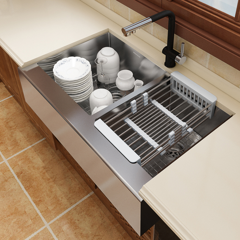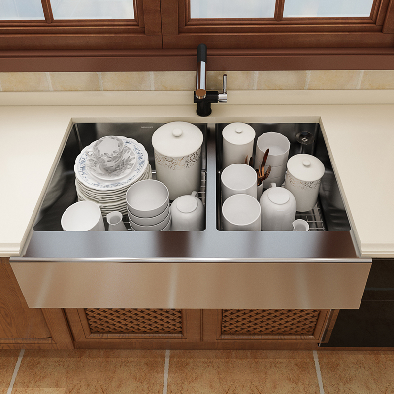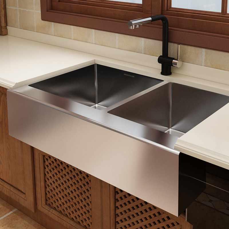 Meshijie American Open Kitchen Sink Front Stainless Steel Pool Thickened Handmade Wash Basin Double Sink Skirt