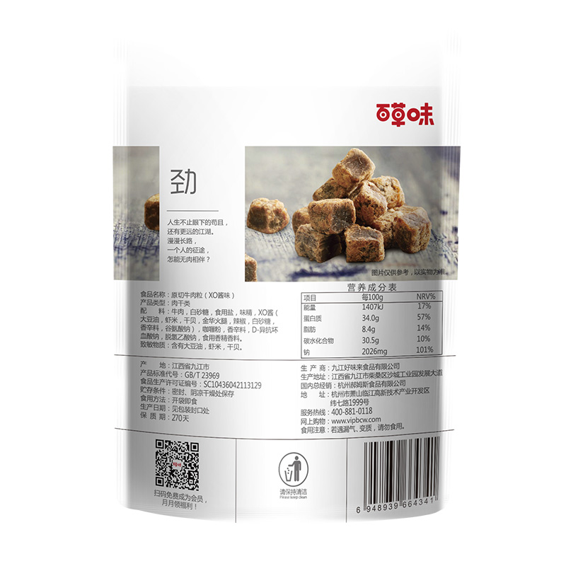 Baicao flavor raw cut beef cubes XO sauce flavor 50g Baicao flavor raw cut beef cubes spicy flavor 50g Baicao flavor raw cut beef cubes five flavors 50g